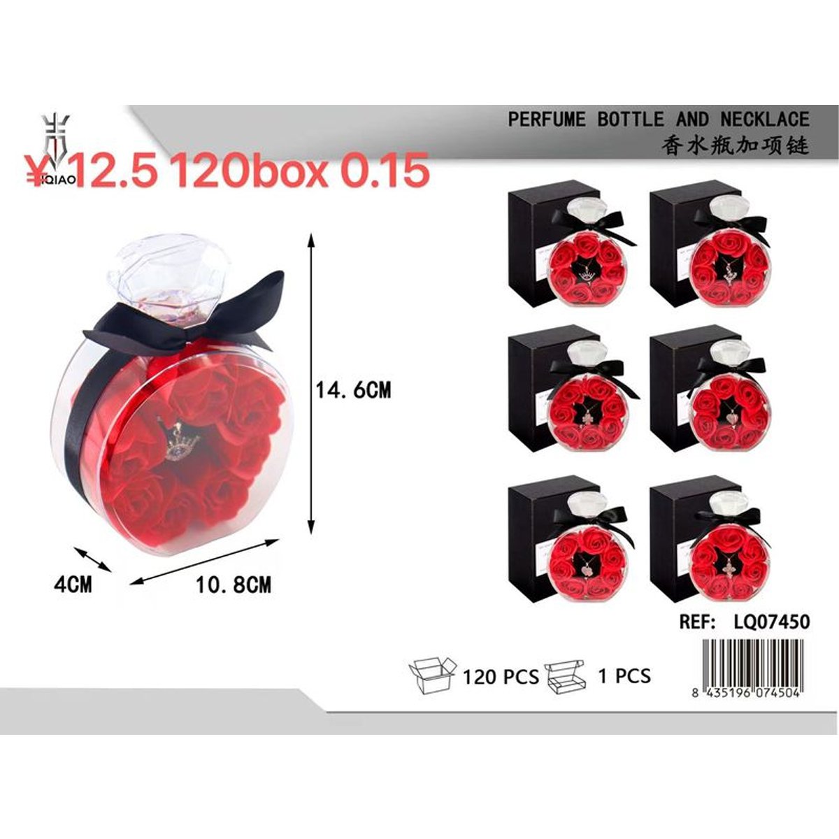 Modelo: 7440-27 – Cofre de Rosas con Collar «Perfume Bottle»