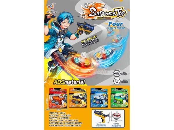 Incluye: 1 lanzador tipo pistola + 2 trompos con luces LED.