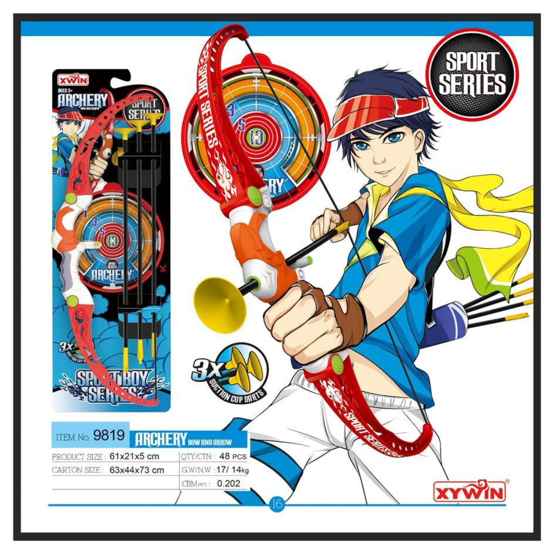 El Modelo 9819 es un set de tiro con arco diseñado para niños, ideal para practicar puntería de forma segura y divertida gracias a sus flechas con punta de ventosa.