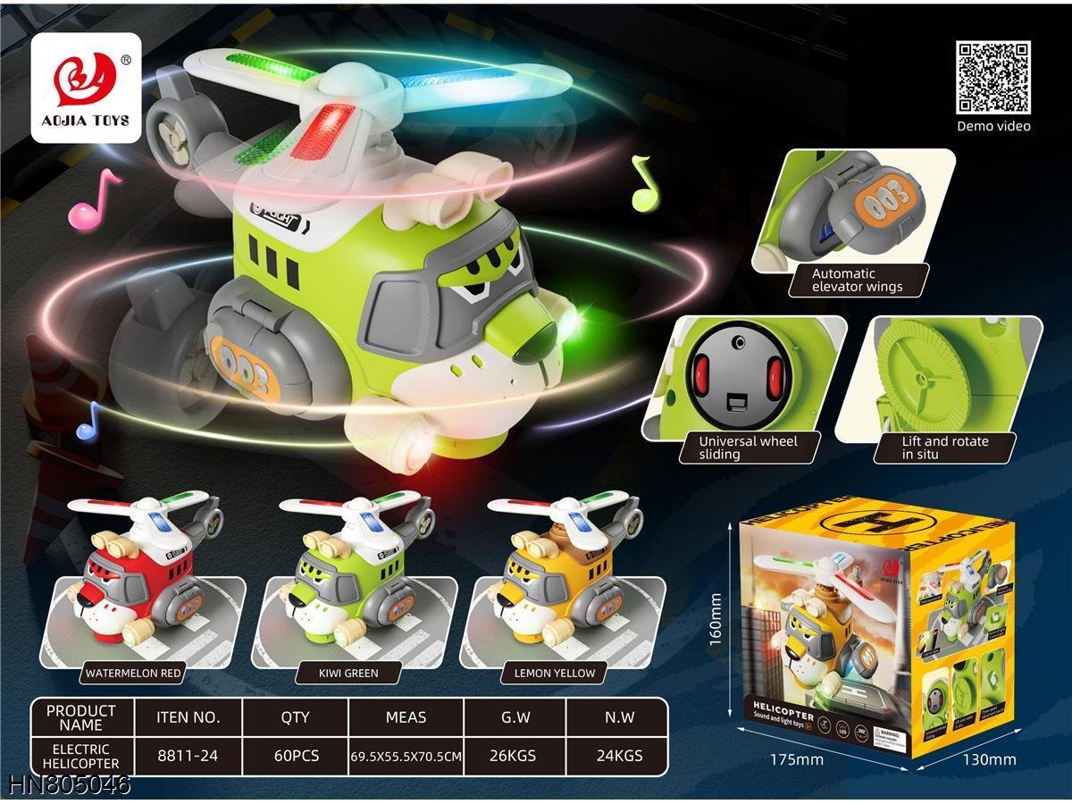 El Helicóptero eléctrico 8811-24 combina un diseño colorido con hélices iluminadas, efectos de sonido y movimiento automático en todas direcciones. Perfecto para pequeños exploradores que aman los juguetes con acción, luces y rotación.