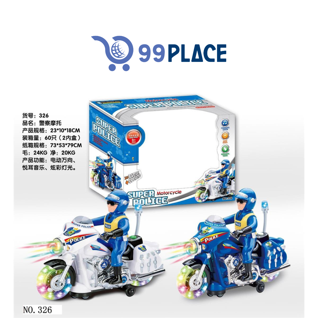 La Motocicleta de Policía Modelo 326 es un juguete eléctrico interactivo con movimiento automático, luces de colores y música. Su diseño detallado y dinámico ofrece una experiencia de juego muy realista para los niños amantes de los vehículos de emergencia.