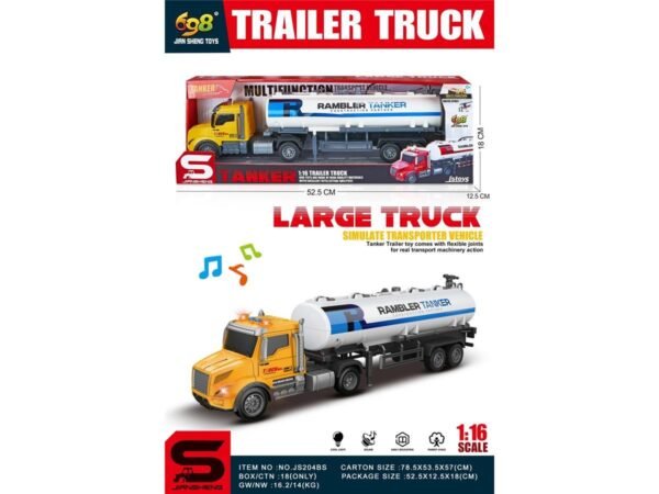 Camión cisterna a escala 1:16 con diseño detallado tipo “tráiler de transporte”.