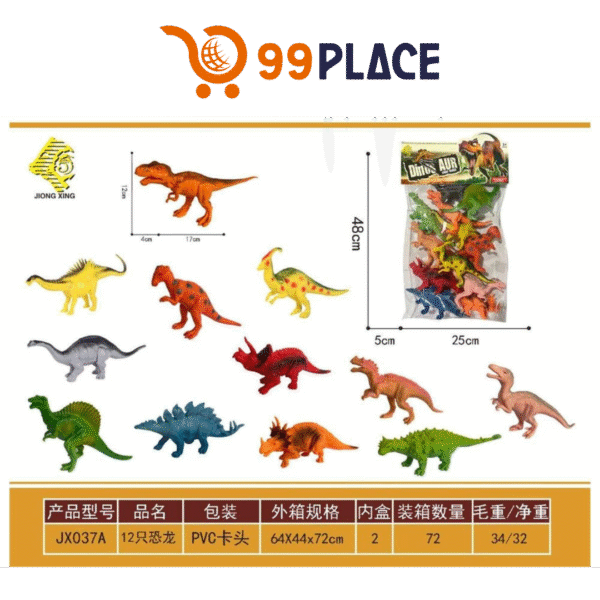 El Set de Dinosaurios Jiong Xing – Modelo JX037A incluye 12 figuras de dinosaurios realistas, diseñadas para enseñar mientras los niños se divierten recreando su propio mundo jurásico.