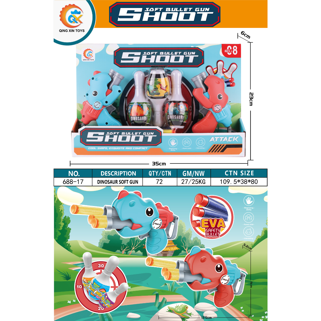 El set de pistolas Dinosaur Soft Gun de Qing Xin Toys combina acción, color y seguridad para que los niños disfruten de un juego emocionante y sin riesgos. Ideal para mejorar la coordinación, precisión y juego en grupo.