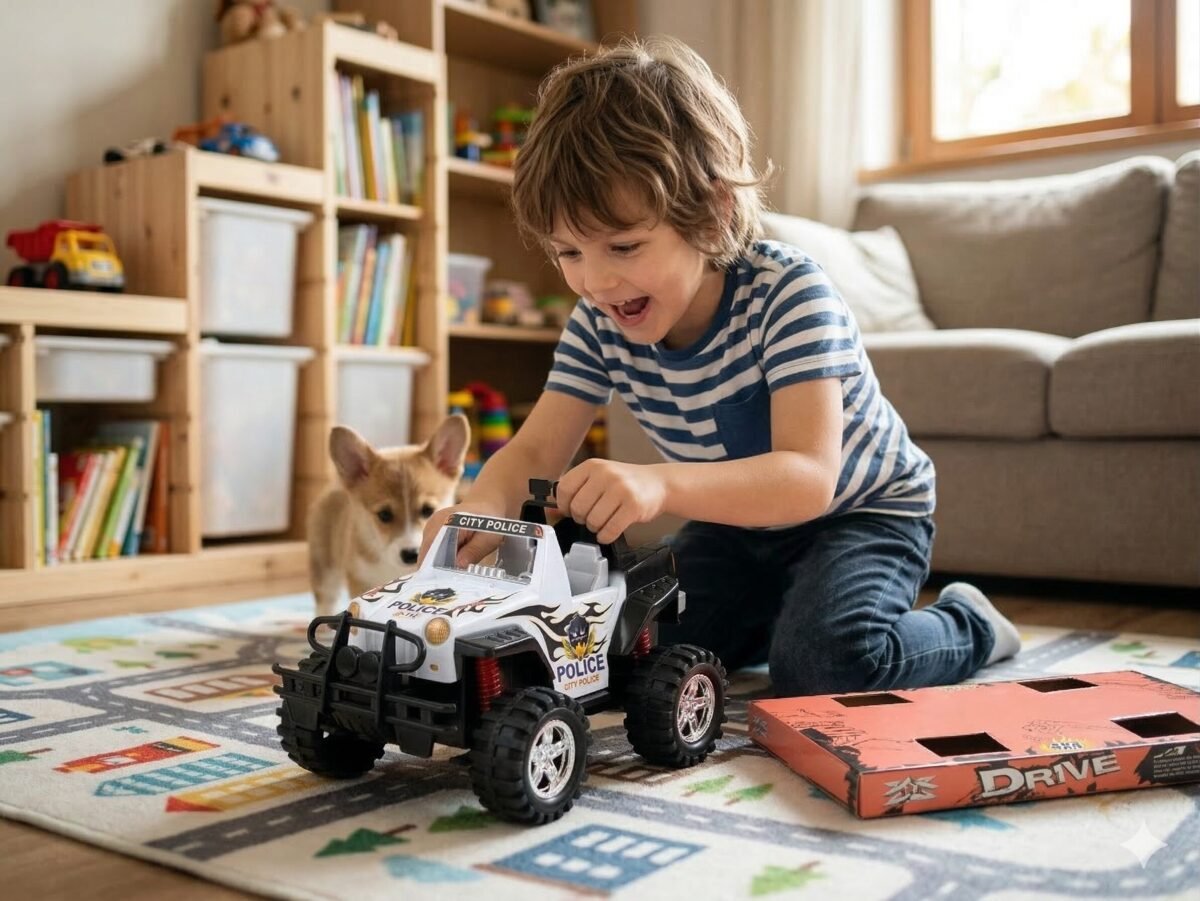 Título Creativo: Jeep de Policía «Todo-Terreno-Todo-Divertido»