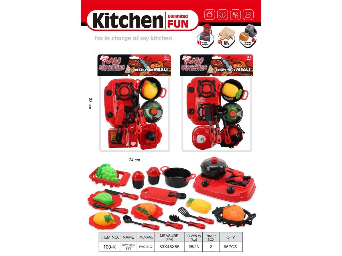 Descripción: ¿Quién dijo que ser chef era difícil? Con este set completo, los pequeños de la casa tomarán el control total de la cocina. Desde picar verduras de juguete hasta servir banquetes imaginarios en su propia estufa roja vibrante. Es el kit perfecto para mini-gourmets que quieren practicar sus recetas antes de conquistar el mundo real. ¡Cuidado, Gordon Ramsay, aquí viene la competencia!