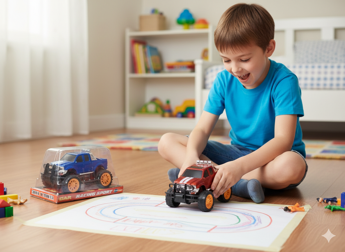 Descripción: Potencia y resistencia para los pequeños amantes de los autos. Esta camioneta 4×4 está diseñada para superar obstáculos gracias a su mecanismo de inercia y neumáticos de gran tamaño.