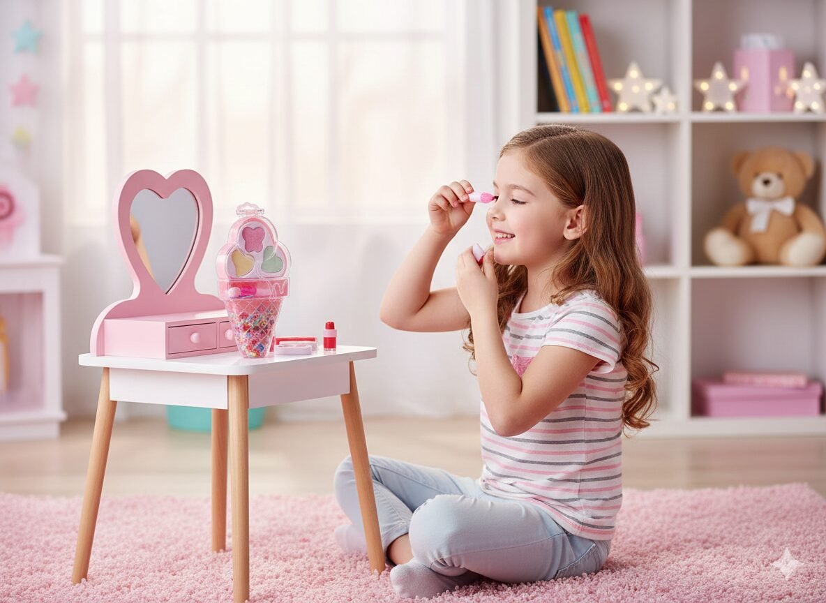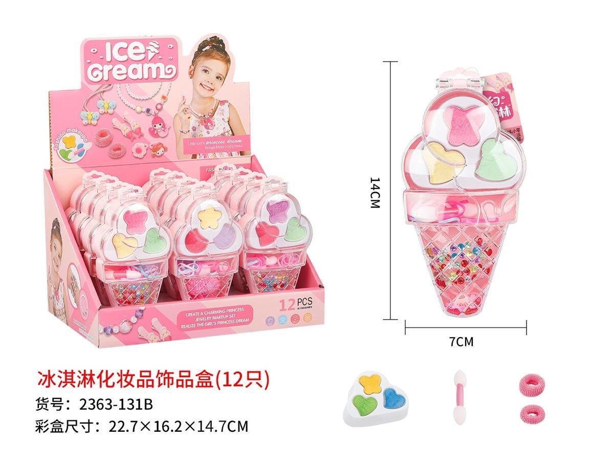 Descripción: ¿Un helado que guarda secretos de belleza? ¡El sueño de toda mini fashionista! Este estuche con forma de barquillo se abre para revelar accesorios brillantes y maquillaje de juguete para horas de juego creativo. ¡Es el toque de azúcar que su tocador necesitaba! 🍦💄