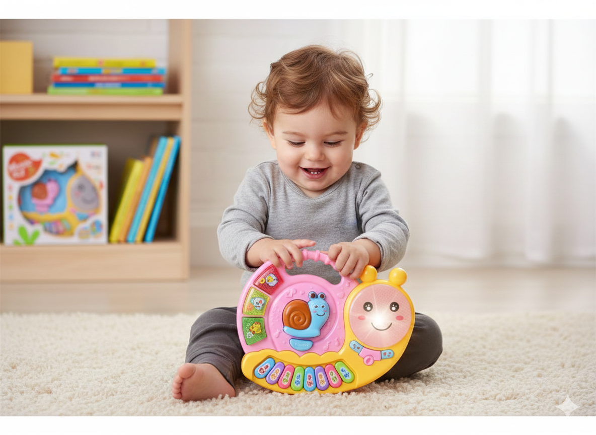 Juguete musical que emite melodías agradables y sonidos divertidos. Ideal para introducir a los niños al ritmo y la música desde temprana edad.