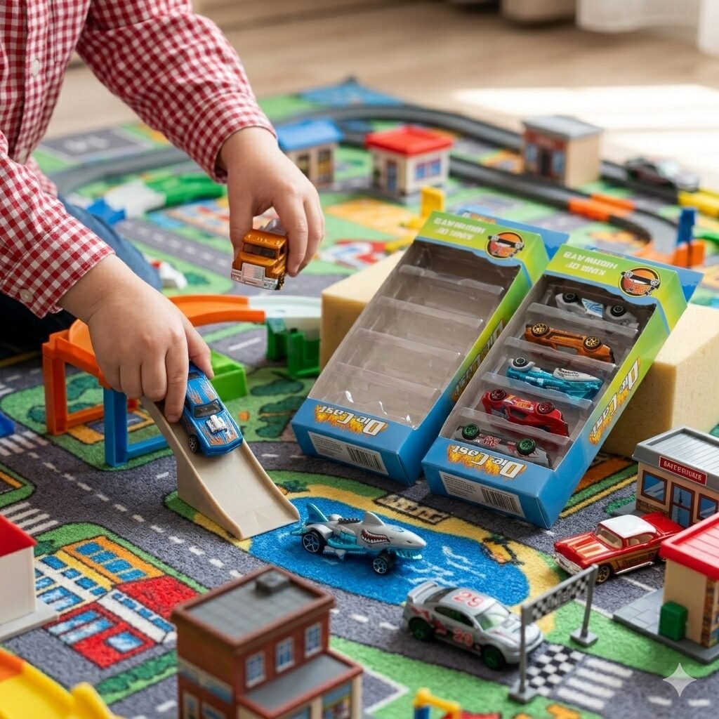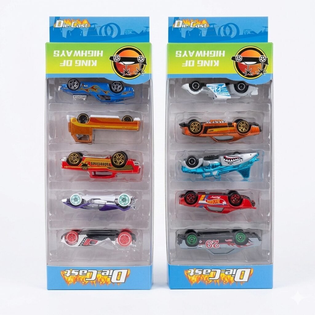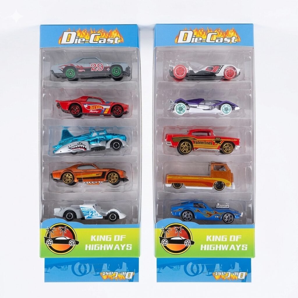Título: King of Highways: Los Amos del Asfalto Lleva la velocidad al límite con estos packs de 5 vehículos metálicos seleccionados para los amantes de la variedad. Desde un coche con diseño de tiburón hasta bólidos de carreras con llamas, este set tiene algo para cada tipo de piloto. Son resistentes, detallados y están diseñados para dominar cualquier pista que imagines en el pasillo de casa. ¡Es hora de decidir quién será el nuevo rey de la carretera!