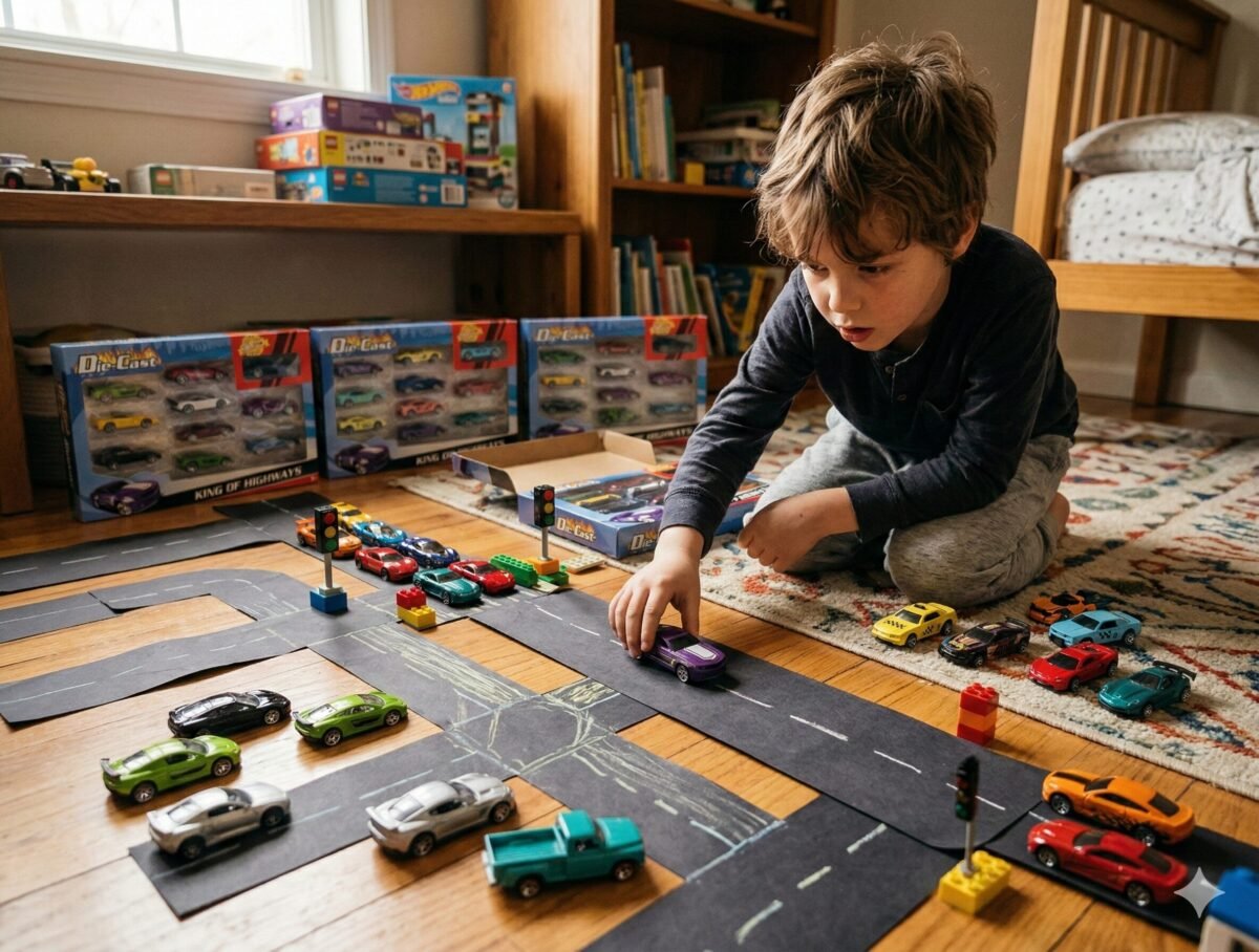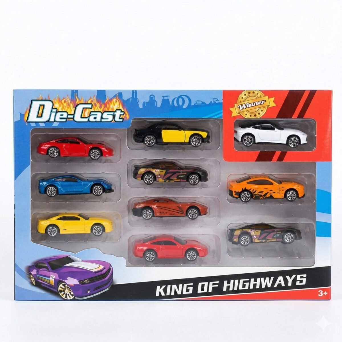 Título: ¡El Garaje de tus Sueños en una Sola Caja! ¿Por qué elegir un solo coche cuando puedes tener toda la autopista? Este set «King of Highways» viene cargado con modelos deportivos, clásicos y de lujo. Perfectos para organizar carreras clandestinas en la sala o simplemente para que tu estantería luzca como el paddock de la Fórmula 1. ¡Advertencia: Puede causar envidia extrema entre los coleccionistas de miniatura!