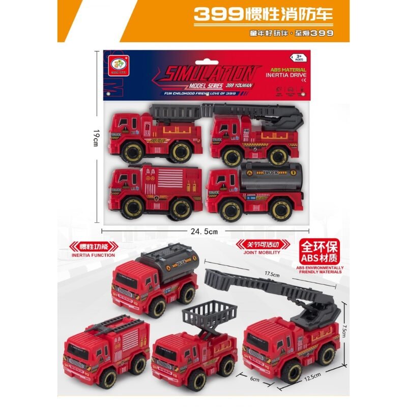 (399-671A4) Set Camiones de Bomberos Inerciales Simulation 4 Piezas