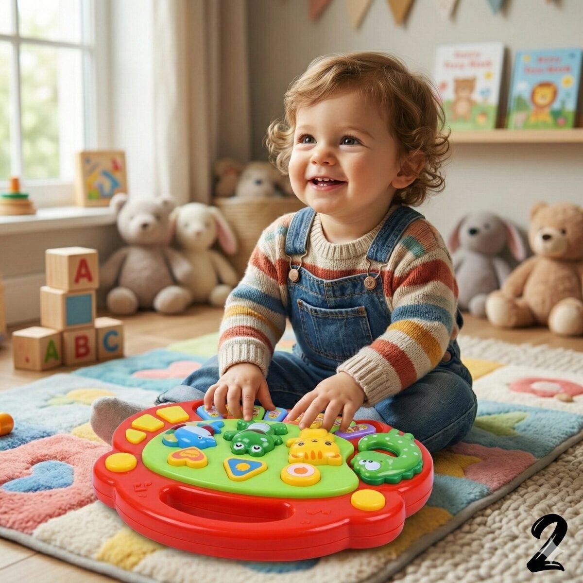 Descripción: ¿Tenemos un Mozart en casa? Este piano es la mezcla perfecta entre música y zoológico. Con teclas de colores y botones de animales que emiten sonidos, es ideal para que los bebés descubran su ritmo interno mientras saludan al cocodrilo y al gatito.