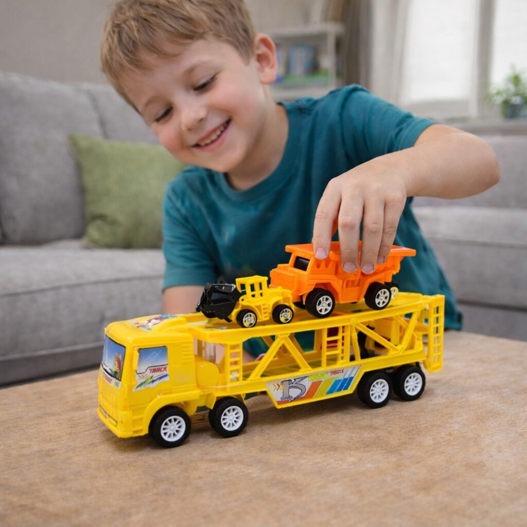 3 Vehículos de construcción miniatura (cargador, volquete y excavadora)