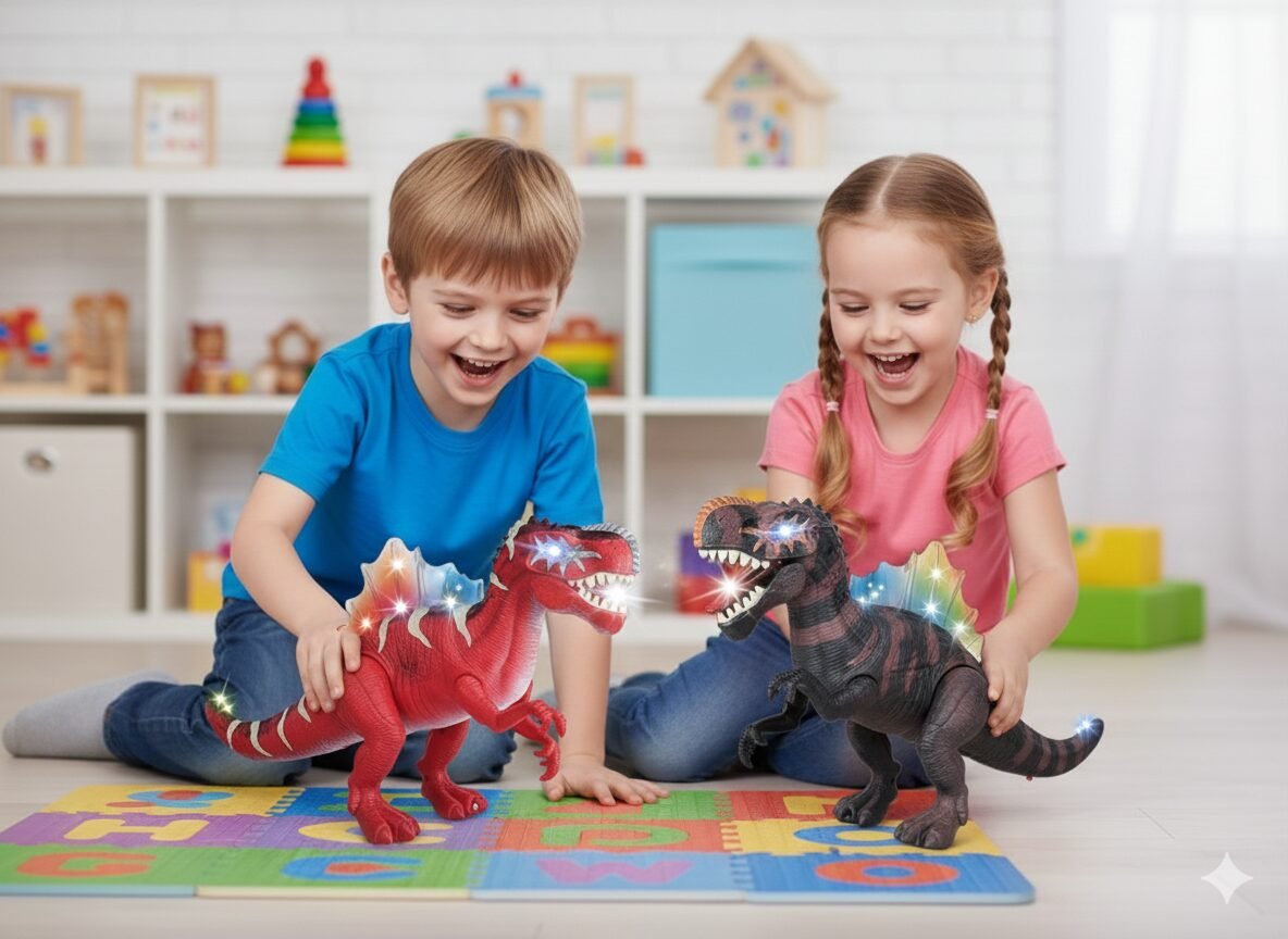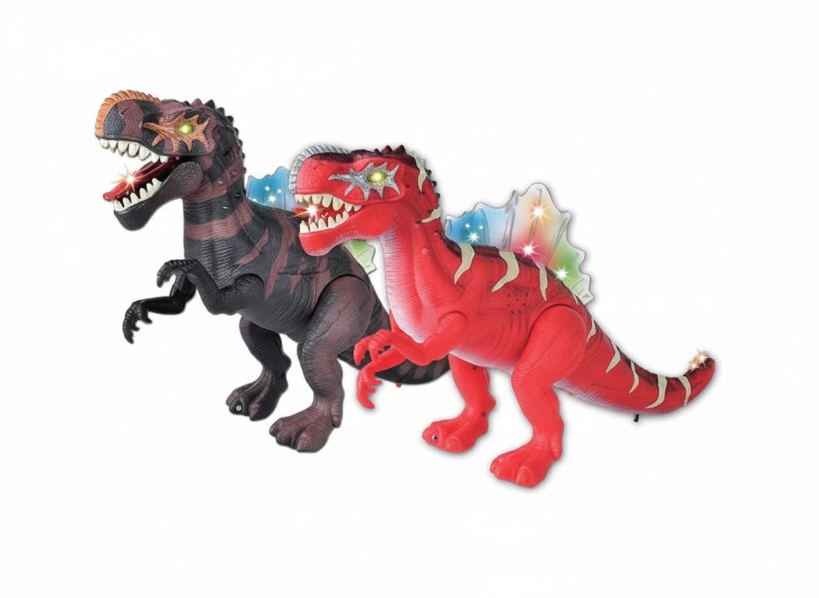 Descripción: ¡Cuidado! Un depredador acaba de entrar en la habitación… ¡pero este es muy cool! Este Spinosaurus no solo camina, sino que sus espinas se iluminan mientras lanza un rugido que hará temblar a los demás juguetes. ¡Es como tener Jurassic Park en casa, pero sin el peligro! 🦖🔥