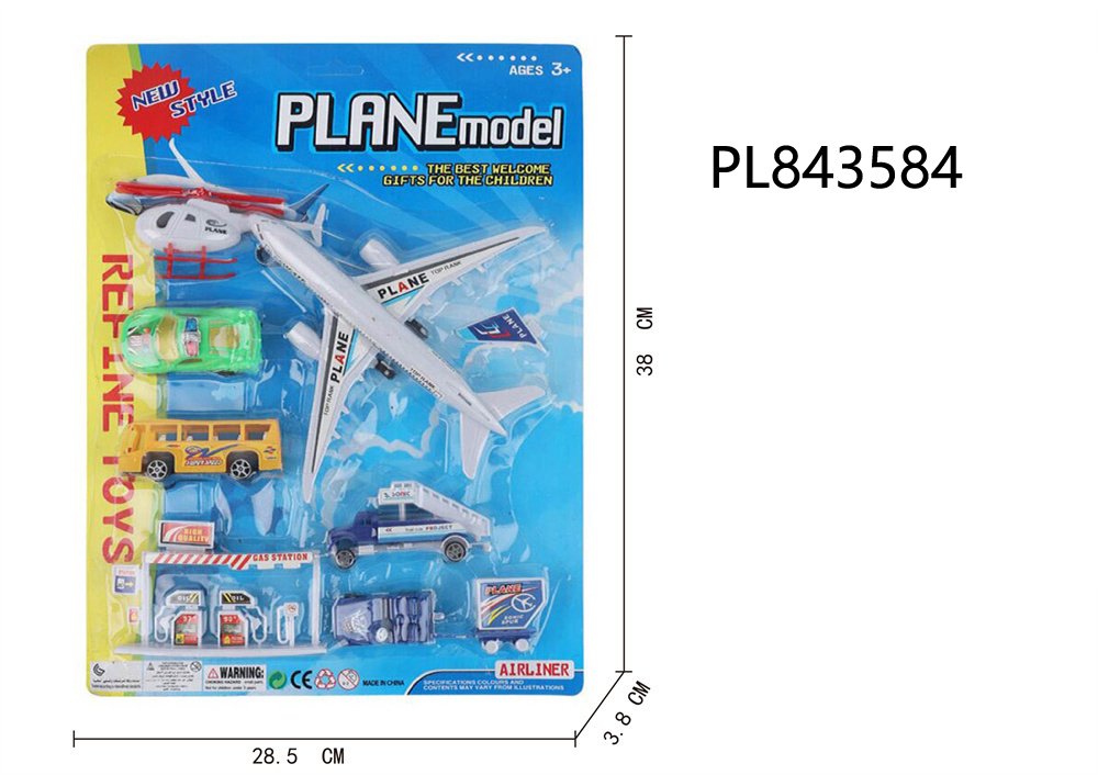 • Contenido: Avión principal + 4 vehículos de servicio + accesorios de gasolinera.