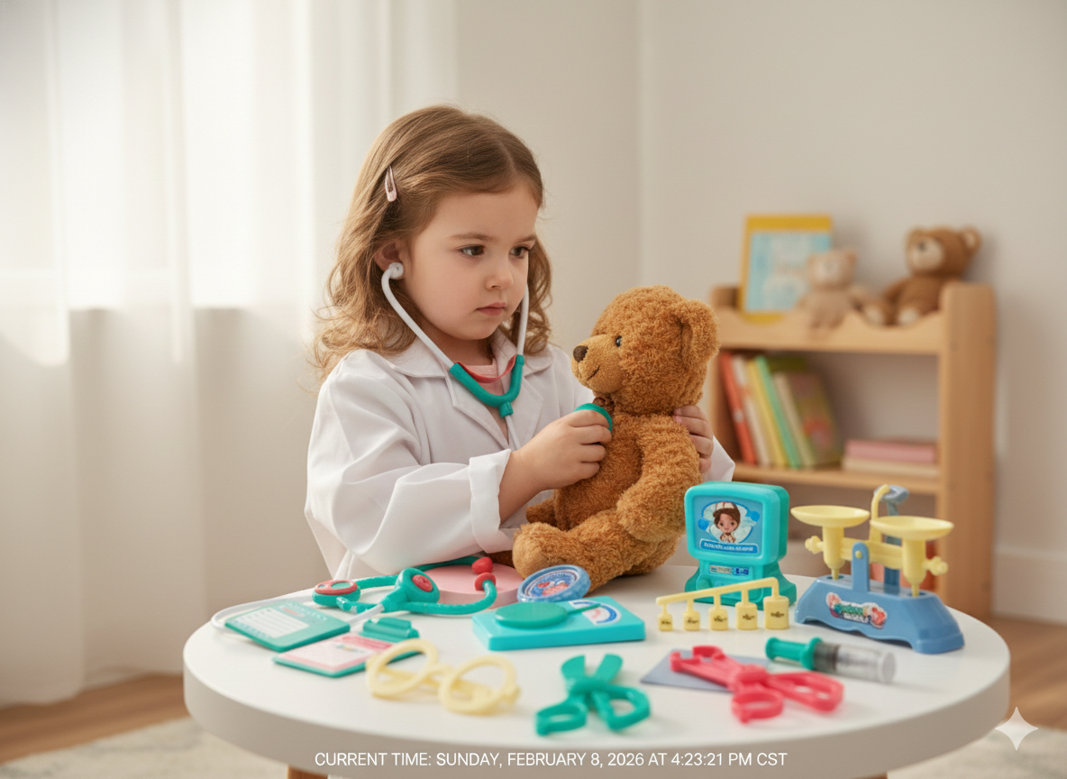 Set de doctor ideal para que los niños jueguen a cuidar y revisar a sus muñecos o familiares. Incluye accesorios que permiten recrear consultas médicas de manera divertida.