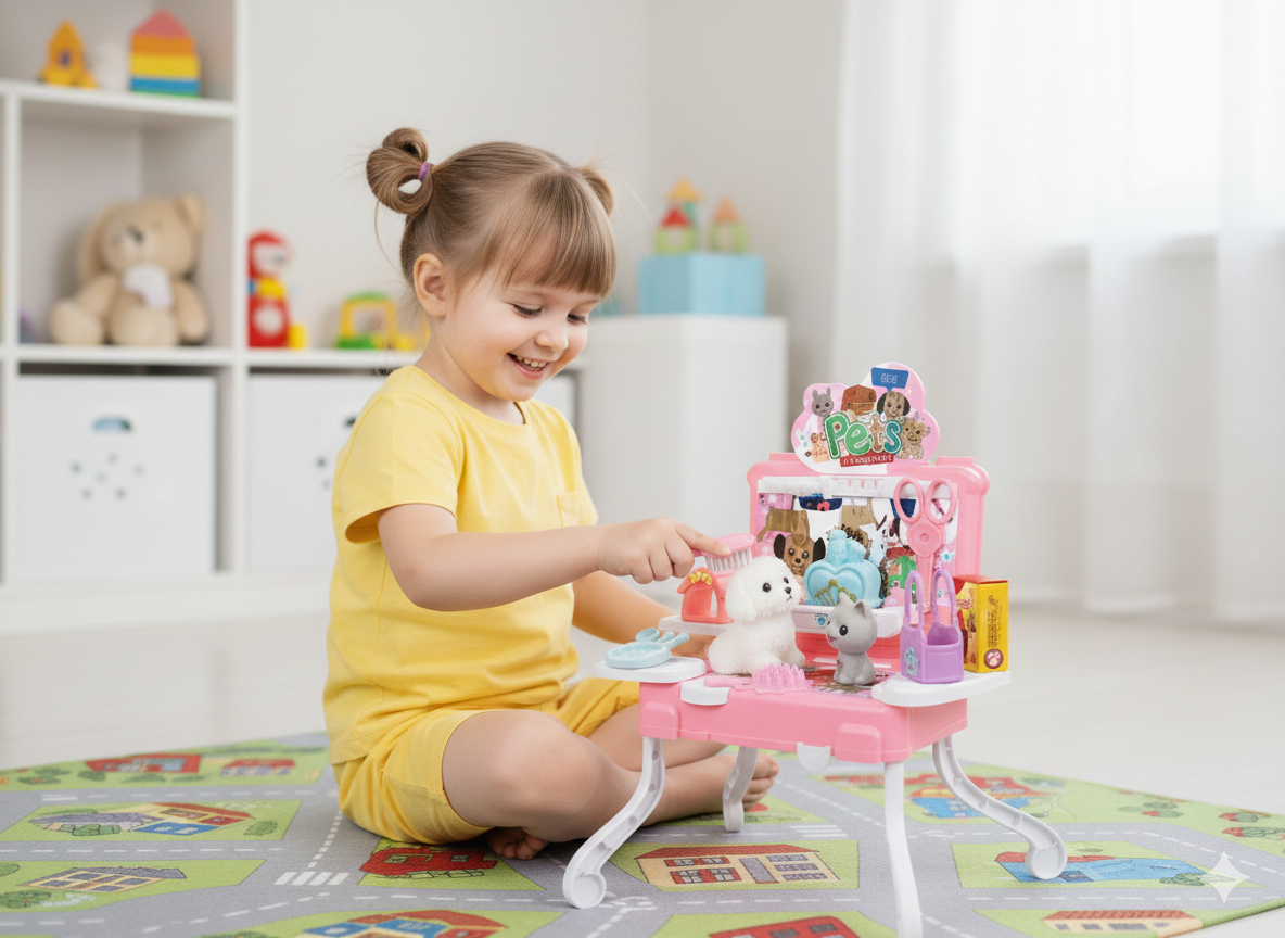 El juguete promueve la imaginación, el desarrollo social y la comprensión de relaciones familiares mediante el juego simbólico. Además, ayuda a estimular la creatividad narrativa y la interacción emocional durante el juego prolongado.