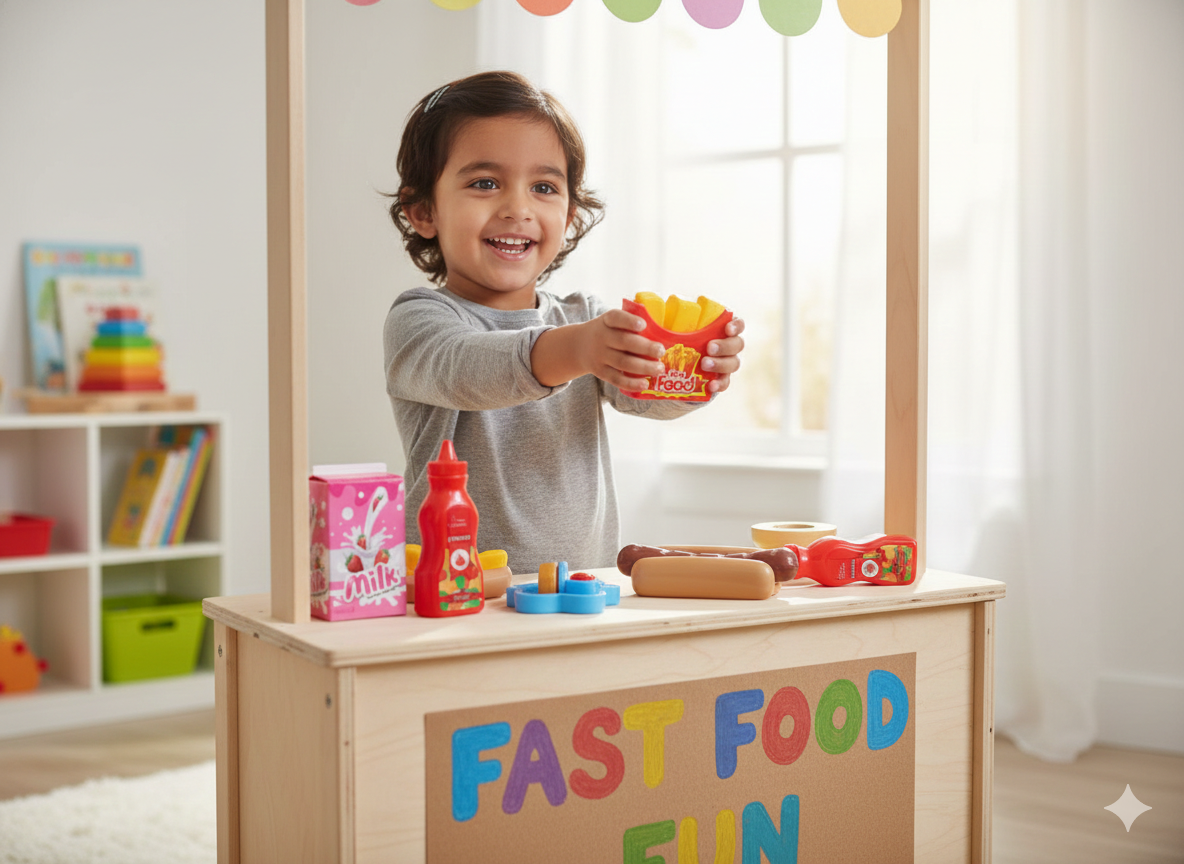 Este set permite recrear experiencias de compra y venta mediante el juego imaginativo. Los niños pueden interpretar roles de vendedores o clientes, aprendiendo conceptos básicos de intercambio, comunicación y convivencia social.