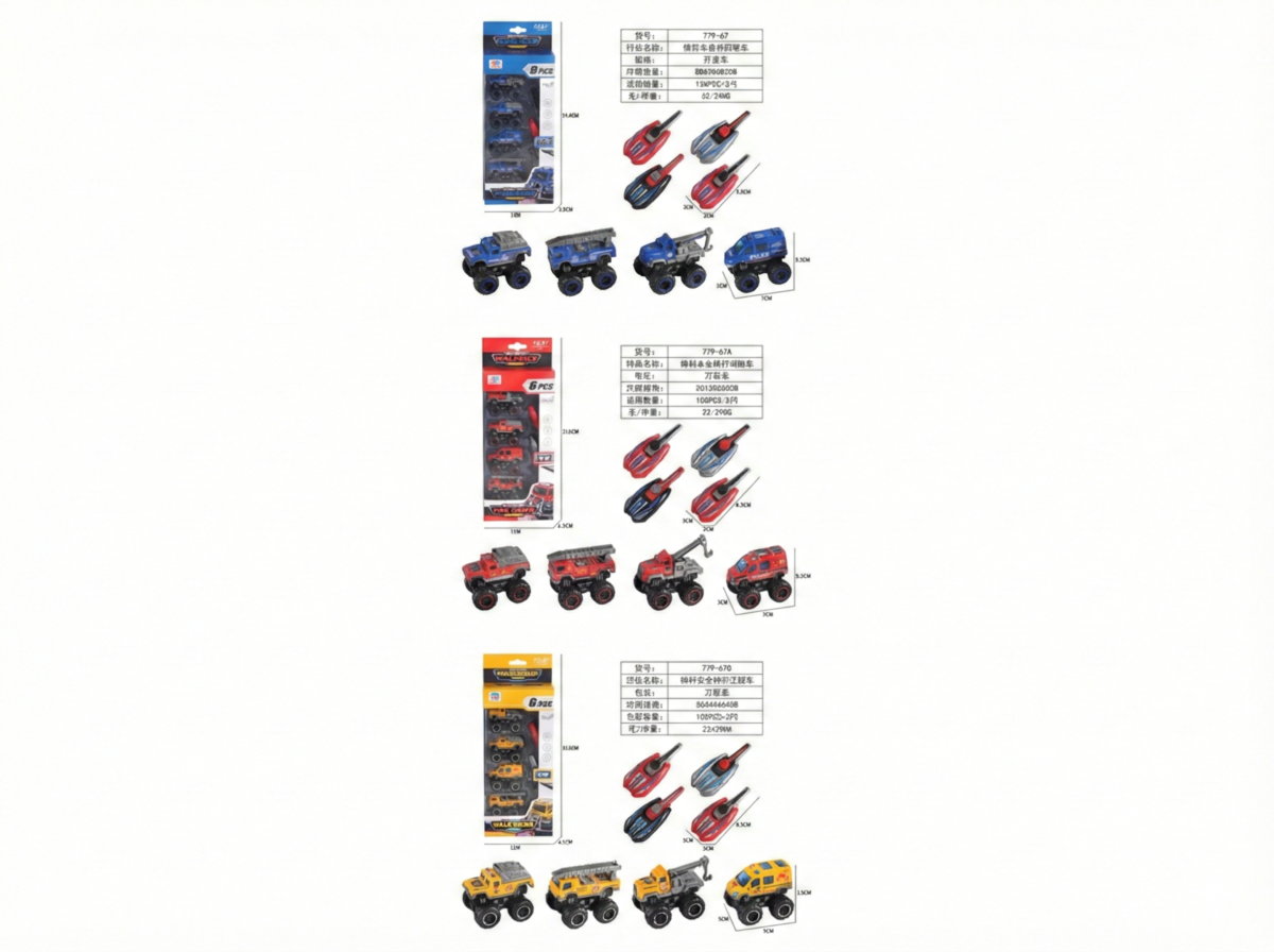 Descripción Premium: Estos sets temáticos de 3 piezas están fabricados con aleaciones metálicas de alta calidad. Ya sea dirigiendo el tráfico con el set de Policía (67), apagando incendios con el de Bomberos (67A) o construyendo ciudades con el de Ingeniería (67C), la diversión está garantizada.