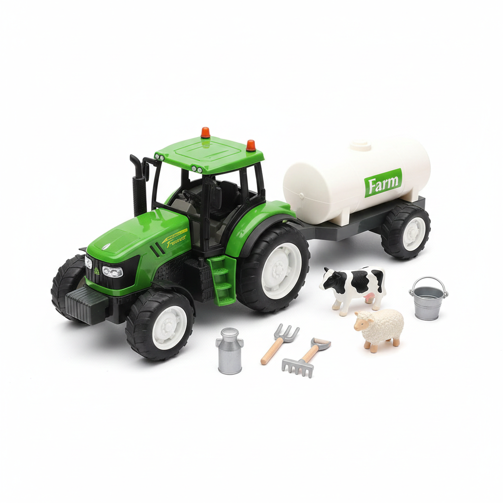 Este completo set combina un tractor con herramientas de arado que permiten recrear procesos agrícolas de forma divertida y educativa. Los niños pueden imaginar que preparan la tierra, cultivan o trabajan en el campo, estimulando la creatividad y el aprendizaje sobre actividades rurales. Además, fortalece habilidades motrices, coordinación manual y pensamiento lógico mientras los pequeños manipulan los accesorios y crean escenarios de trabajo agrícola.