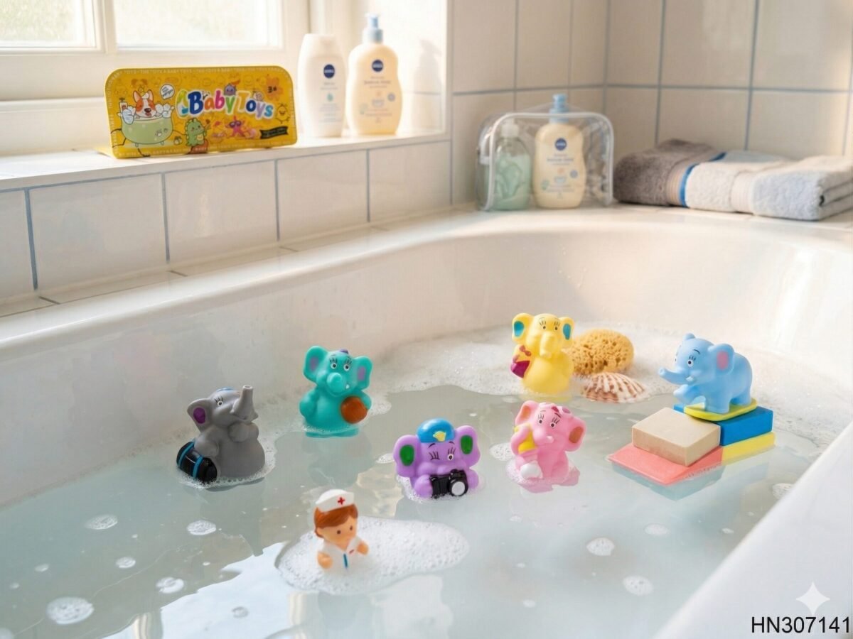 Descripción: ¿Quién dijo que los elefantes solo son grises? Aquí tienes un escuadrón arcoíris listo para la acción. Cada uno tiene su propia personalidad: el fotógrafo, el de la pelota y hasta el que hace surf. Hechos de material seguro y suave, son los compañeros ideales para juegos sensoriales. Advertencia: pueden causar exceso de ternura en la habitación.