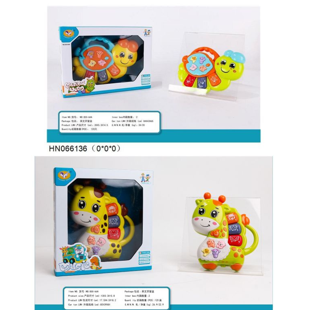 La 855-66A es una jirafa musical educativa con botones interactivos y colores vibrantes. Perfecta para acompañar a los bebés durante sus primeras etapas de aprendizaje.
