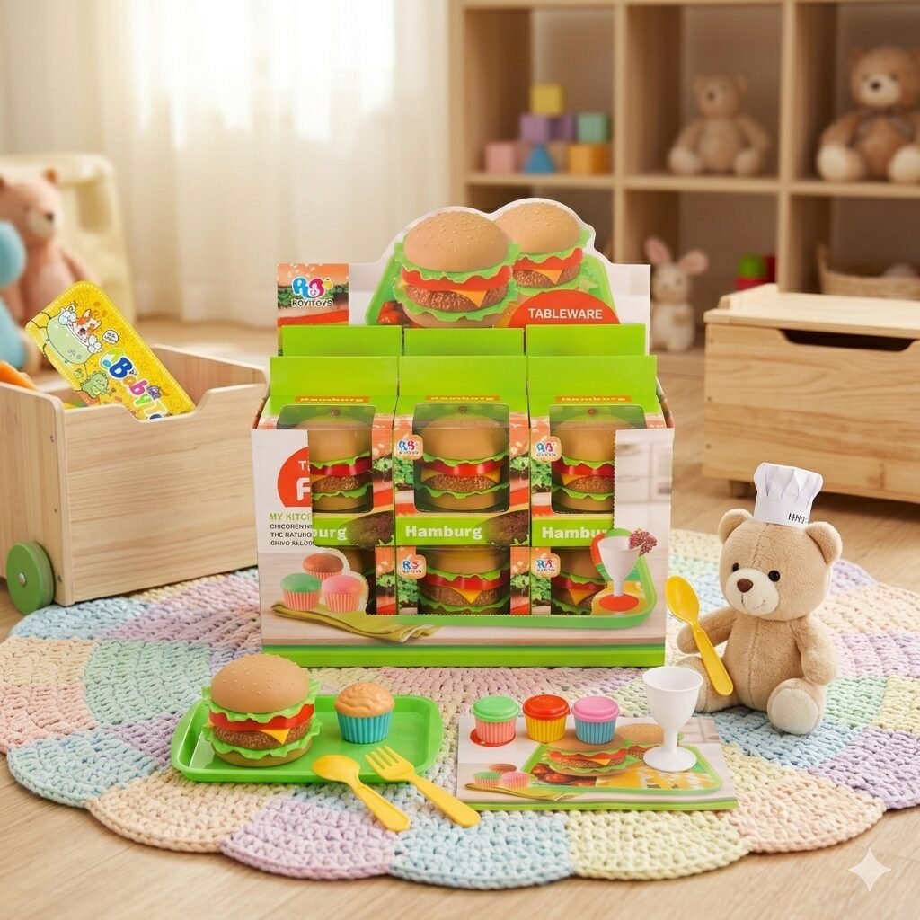 Descripción: Construye la hamburguesa perfecta sin ensuciar la cocina. Este set viene con su charola y cubiertos para que el juego de «restaurante» sea nivel experto. Es el regalo perfecto para los pequeños chefs que ya dominan el arte de pedir papas fritas.