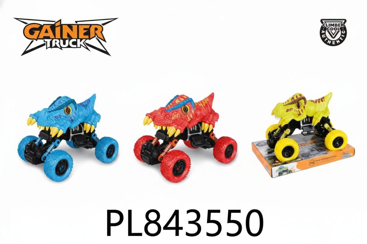 ¿Es un dinosaurio? ¿Es un camión? ¡Es ambos! Estos vehículos con cara de T-Rex tienen llantas gigantes de 17cm para aplastar cualquier juguete pequeño que se cruce en su camino jurásico.