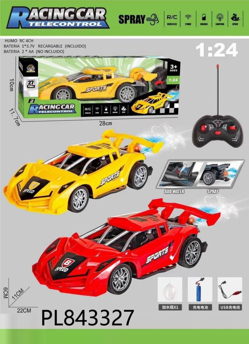 Título: Racing Car RC: ¡Cuidado con el Humo! Este no es un coche de control remoto cualquiera. A escala 1:24 y con un diseño aerodinámico agresivo, este bólido tiene una función de «spray» que simula humo real por el escape. Solo añade un poco de agua, acelera y deja a tus rivales perdidos en la niebla. ¡La tecnología nunca se vio tan rápida!