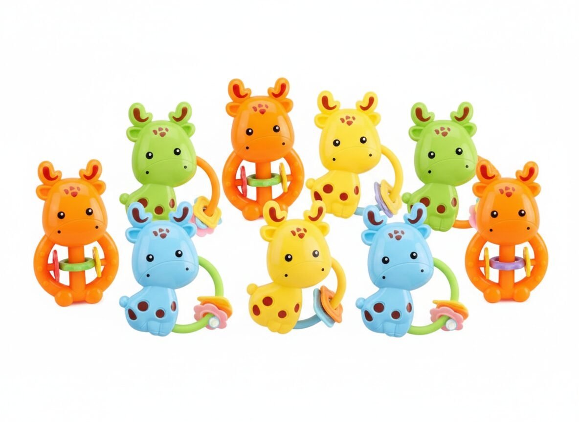 Descripción: ¿Quién dijo que las jirafas eran solo para verlas de lejos? Este grupo de amigas coloridas está listo para el «shake-shake» más divertido del día. Con un diseño ergonómico para manos pequeñitas y colores vibrantes, estas jirafas no solo calman, ¡sino que arman la fiesta en la cuna! 🦒✨
