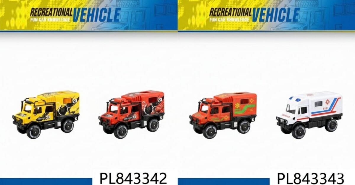 ¡Listos para cualquier terreno! Estos vehículos recreativos (RV) todoterreno no solo son para acampar, son verdaderas fortalezas móviles. Disponibles en versiones de expedición (amarillo/rojo) o como una unidad médica de emergencia avanzada (blanco/azul).