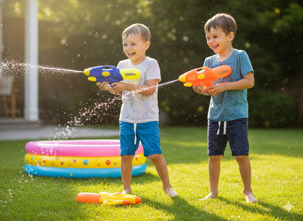 Fabricada con materiales seguros y duraderos, esta pistola es ideal para convertir cualquier día soleado en una aventura llena de diversión, movimiento y creatividad.