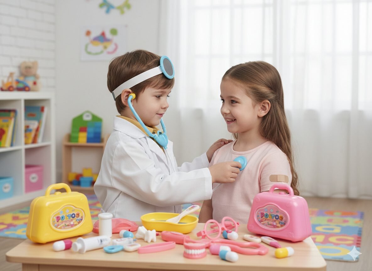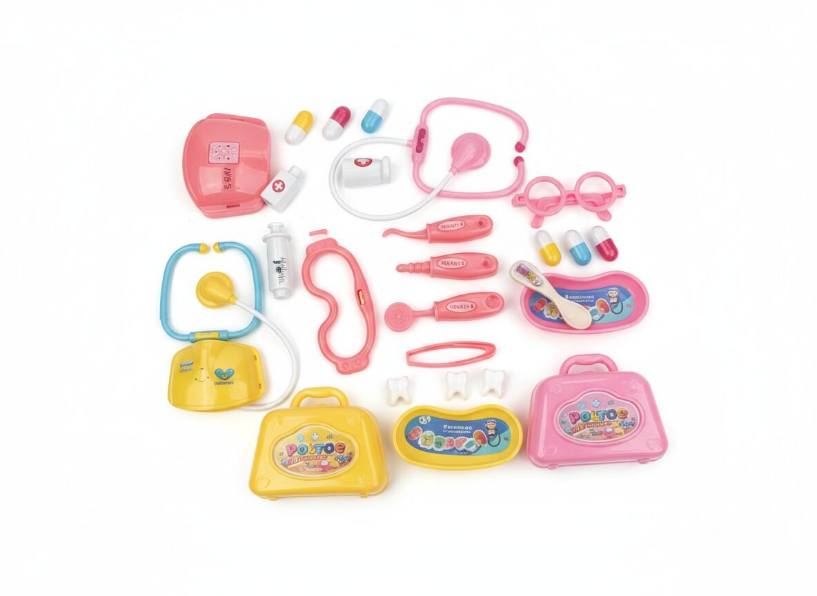 Herramientas de Precisión: Incluye termómetro, jeringa (¡sin dolor!), gafas de examen y medicinas de juguete.