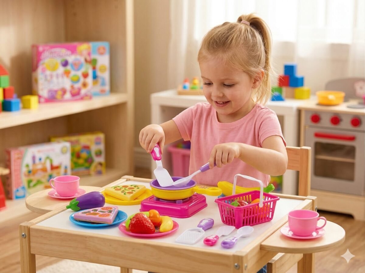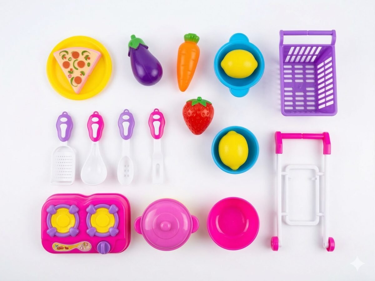 Lo que importa: Kit completo de cocina con sartén, canastilla, rebanadas de pizza y utensilios de diseño ergonómico para pequeñas manos.
