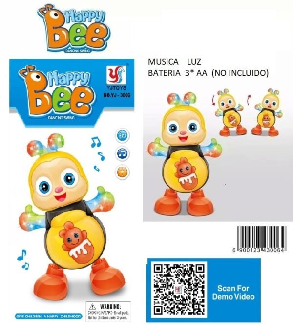 Haz que los más pequeños vivan momentos llenos de risas y música con la adorable Happy Bee, la abejita electrónica que baila, gira, se ilumina y canta. Ideal para bebés y niños pequeños, este juguete estimula el movimiento, la coordinación y ¡la alegría!