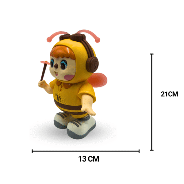 ¡Conoce a tu nuevo compañero de fiesta! El adorable BeeDance no solo baila, ¡también brilla, canta y parpadea! Este simpático amiguito vestido de abejita está listo para poner a todos a moverse con sus divertidos pasos y luces brillantes.