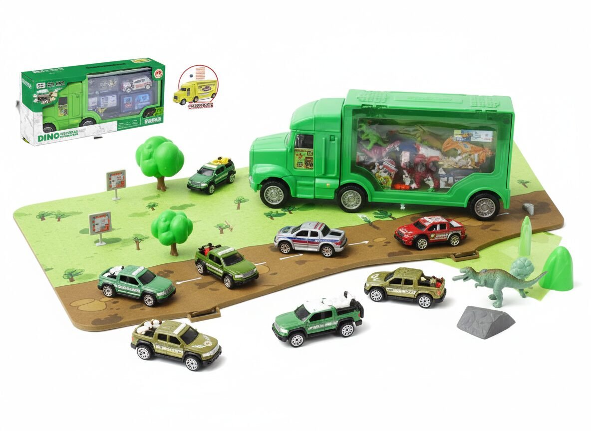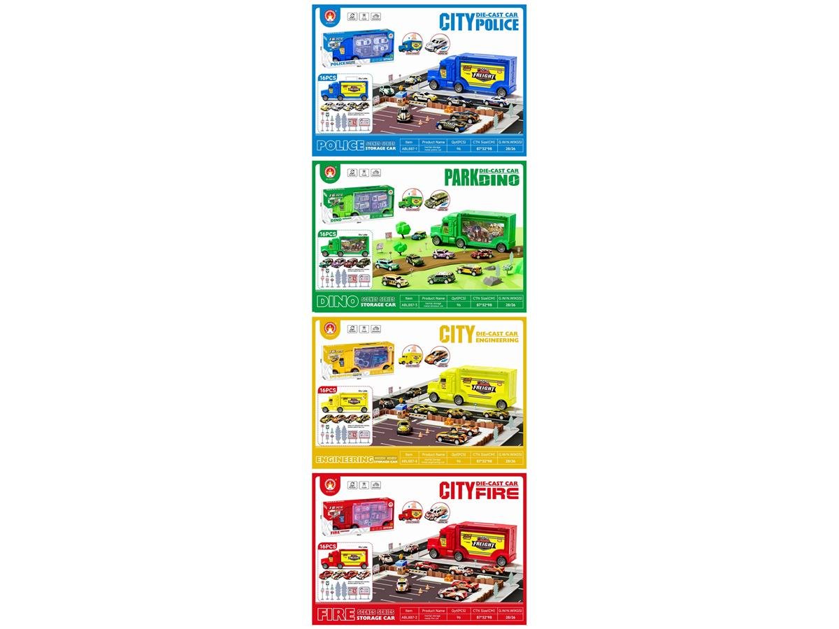 • Descripción: ¿Por qué conformarse con un carrito cuando puedes tener una flota entera? Este camión gigante no solo es un vehículo, ¡es un garage móvil! Elige entre la fuerza de la Policía, el rugido de los Dinosaurios, el poder de la Construcción o la valentía de los Bomberos. Con 16 piezas incluidas, la ciudad (o la selva) estará a salvo bajo tu mando.