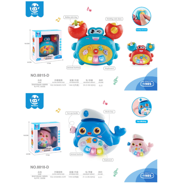 Los animales musicales BenBle combinan melodías, luces interactivas y botones con sonidos de animales, ayudando al desarrollo auditivo, visual y motriz del bebé.