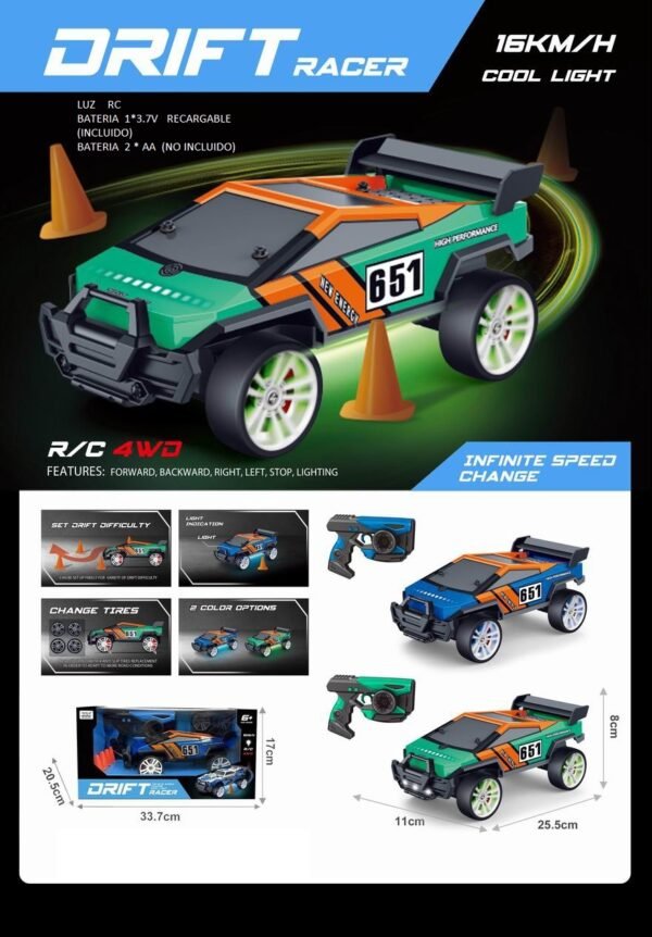 | Drift Racer RC 4WD | Hasta 16 km/h | Luces + Control Remoto