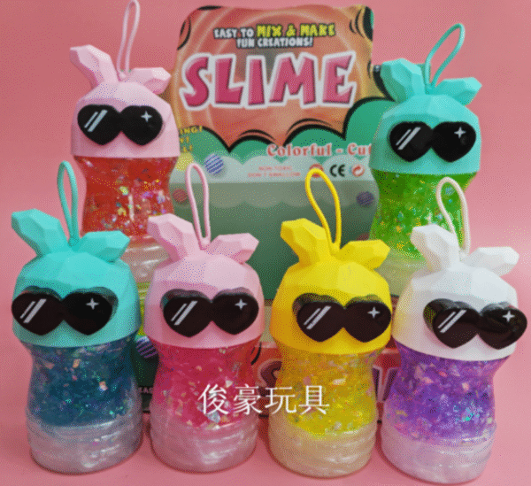 Prepárate para brillar con nuestras botellas de slime “Bunny Cool”, una combinación perfecta de estilo, color y diversión. Cada envase viene con un adorable conejito con gafas de sol en forma de corazón, ¡listo para robarse todas las miradas! 💖🕶️