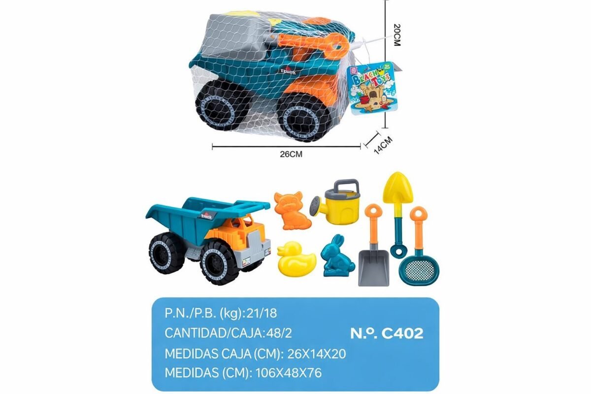 El C402 Beach Truck Set es un divertido set de playa que incluye un camión de juguete y accesorios para jugar en la arena. Ideal para que los niños disfruten al aire libre mientras desarrollan su creatividad construyendo y explorando.