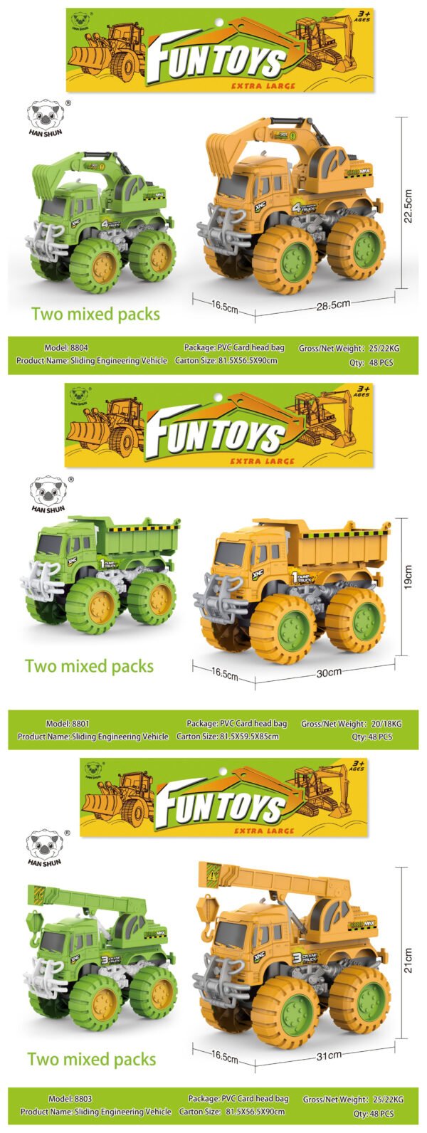 Prepárate para vivir una aventura sobre ruedas con los vehículos de ingeniería deslizantes “Sliding Engineering Vehicle” de HAN SHUN. Estos camiones extragrandes vienen en diferentes modelos y colores vibrantes, ¡listos para conquistar cualquier terreno imaginario!