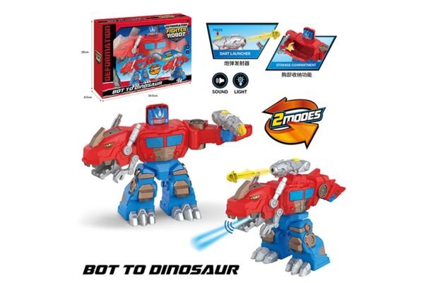 ¡El increíble BOT TO DINOSAUR  está aquí para revolucionar la diversión! Un poderoso robot guerrero que se transforma en un temible dinosaurio con solo unos movimientos. ¿Robot o Dino? ¡Tú decides cuándo cambiar de modo!