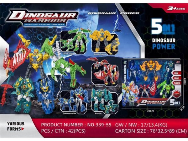 El set Dinosaur Warrior 5 en 1 combina acción, fuerza y transformación en un solo paquete épico.