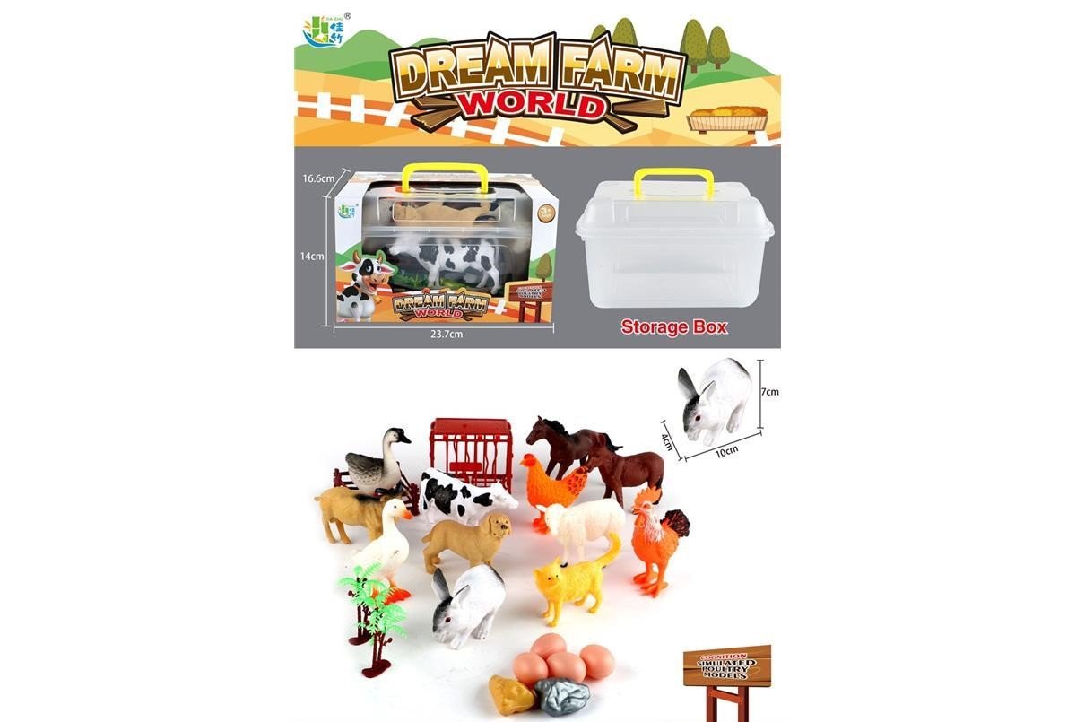 🚜✨ Dream Farm World – Set de Animales de Granja con Caja de Almacenaje 🐴🐰
