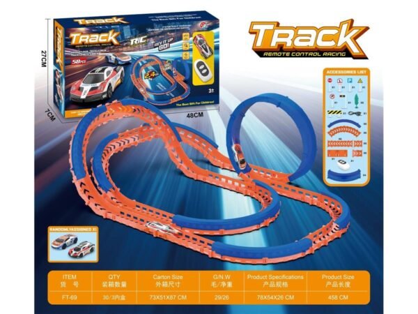 La pista Track Remote Control Racing FT-69 ofrece una experiencia de velocidad y acción extrema con su loop doble de 360° y su extenso recorrido de más de 4.5 metros. Ideal para pequeños pilotos que aman los desafíos y las acrobacias de alto impacto.