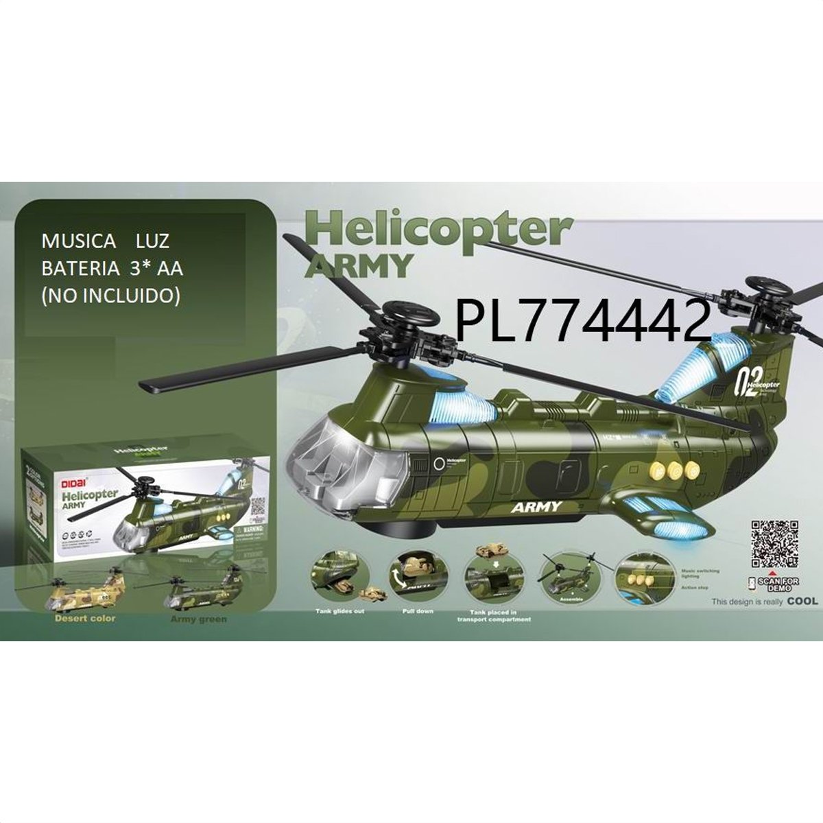 ¡Prepárate para despegar con este poderoso Helicóptero Militar Army! Con luces, sonidos y compartimiento de carga para tanques, este increíble vehículo aéreo lo tiene todo para llevar la acción a otro nivel. ¡Ideal para niños y niñas con alma de comandante!