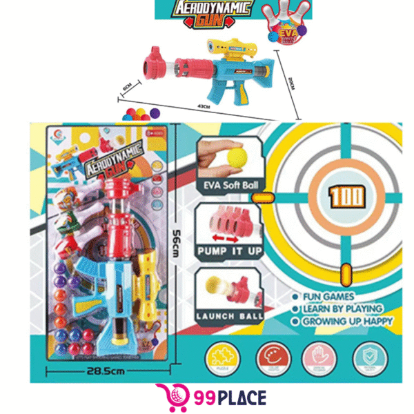 El Lanzador Aerodynamic Gun PL713338 es perfecto para niños y niñas que aman la acción. Con su sistema de bombeo manual, lanza pelotas EVA suaves sin riesgo, fomentando la puntería, coordinación y juego activo.