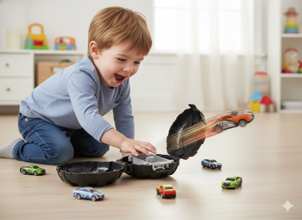 Sistema de lanzamiento: Utiliza el mecanismo «Push Down and Catapult» para disparar los autos a toda velocidad con un solo clic.